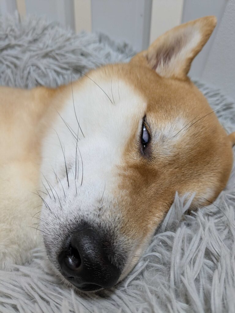これ、犬飼いあるあるですよね? 「女子としてその顔はどうなの?」とツッコミつつも、あまりの可愛さにシャッターが止まりません。この無防備な姿を見られるだけで、明日もまた100均で新しい芋虫を買ってこようと決意する私でした。